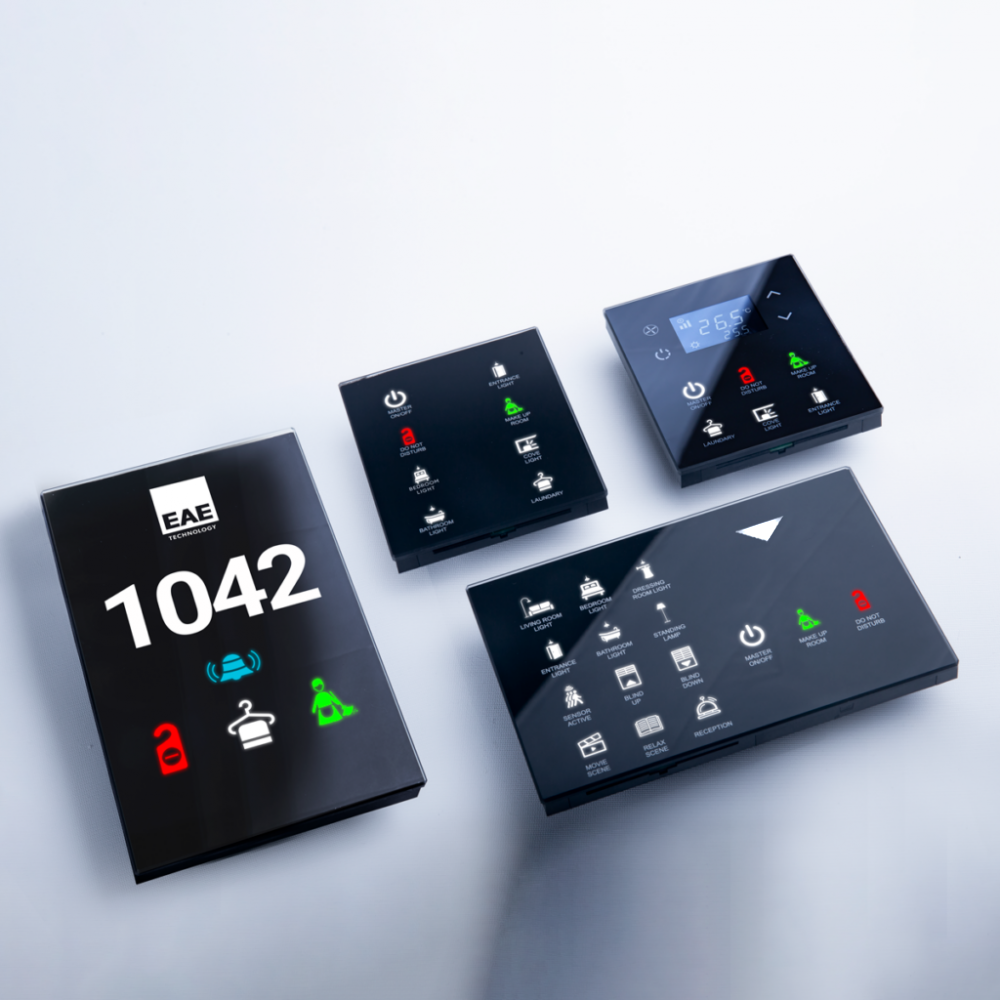 Sie können Schalter und Thermostate mit Ihrem Energiesparer kombinieren. Gäste steuern viele Dinge über ein einziges Monoblock-Panel.