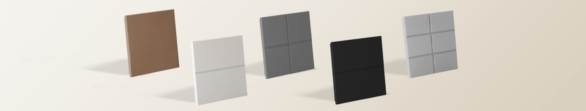 Painted metal surfaces adds aesthethic apperance to your space. Rosa Pictus switches contain 5 different color alternatives.