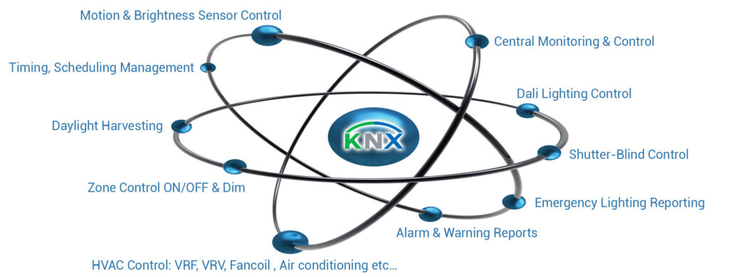 KNX è uno standard aperto per l'automazione degli edifici commerciale e domestica. I dispositivi KNX possono gestire illuminazione, tende e tapparelle, HVAC, sistemi di sicurezza, gestione dell'energia, audio video, elettrodomestici, display, telecomando.