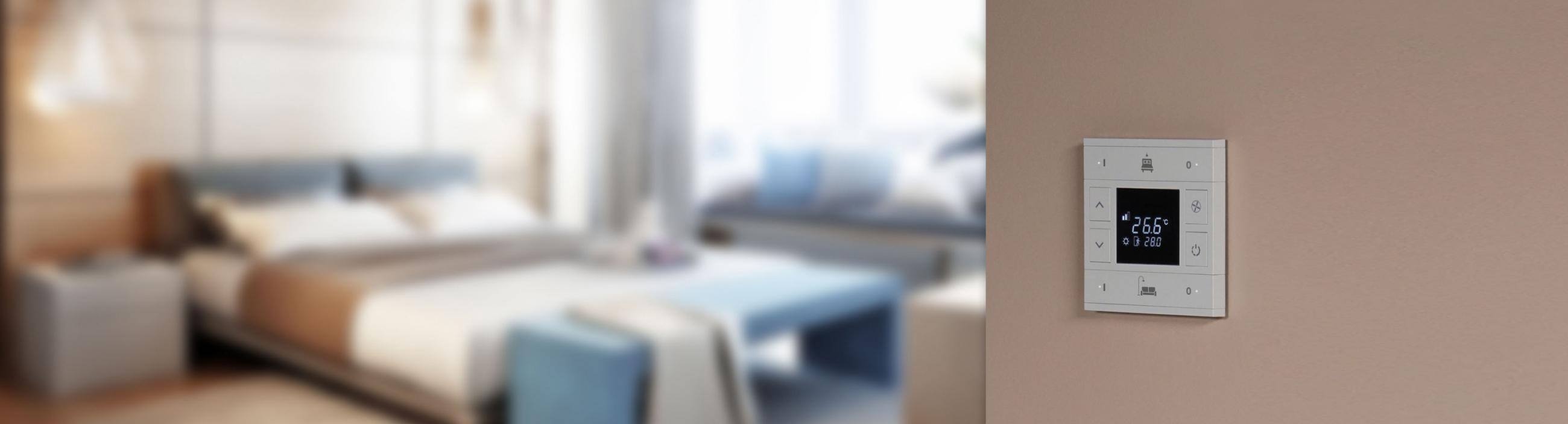 Oria-Thermostate können alle erforderlichen Vorgänge mit einer einzigen Berührung ausführen. Programmierbare Tasten an Oria-Thermostaten können Komfort- und Energiesparanforderungen wie Beleuchtung, Rollläden/Jalousien, Szenenruf, Lautsprecher und Paniktaste steuern.