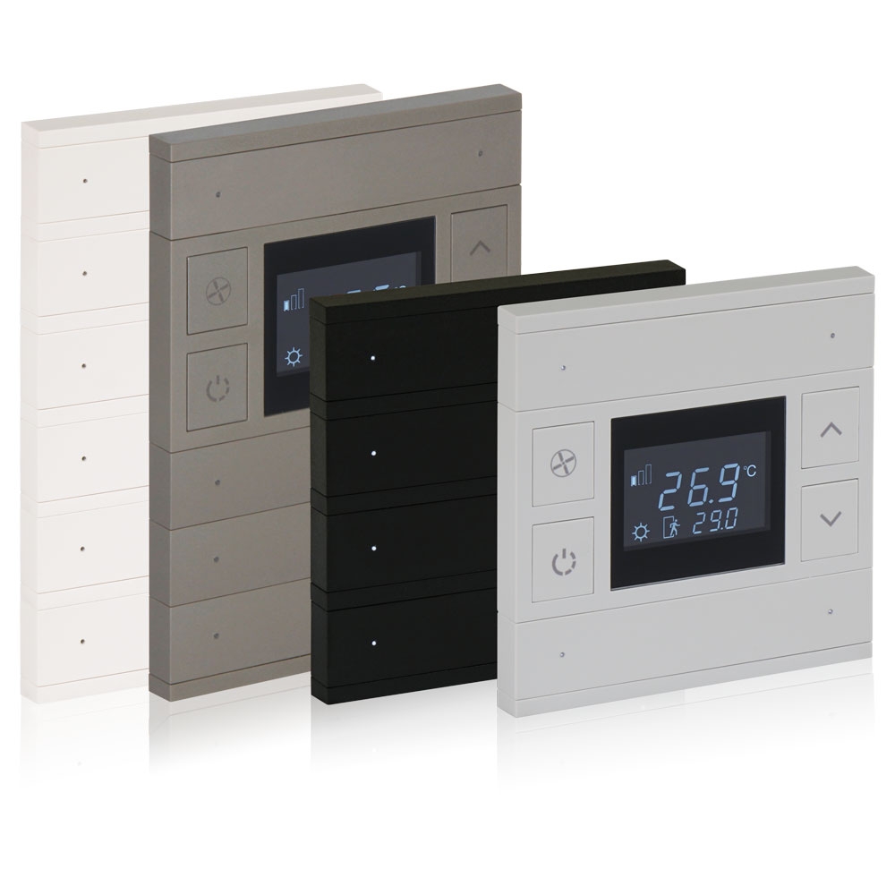 Oria Thermostate sind bis zu 4-fach erweiterbar und bieten eine große Auswahl an Möglichkeiten für alle Räume, in denen sowohl Thermostate als auch programmierbare Schalter gleichzeitig benötigt werden.