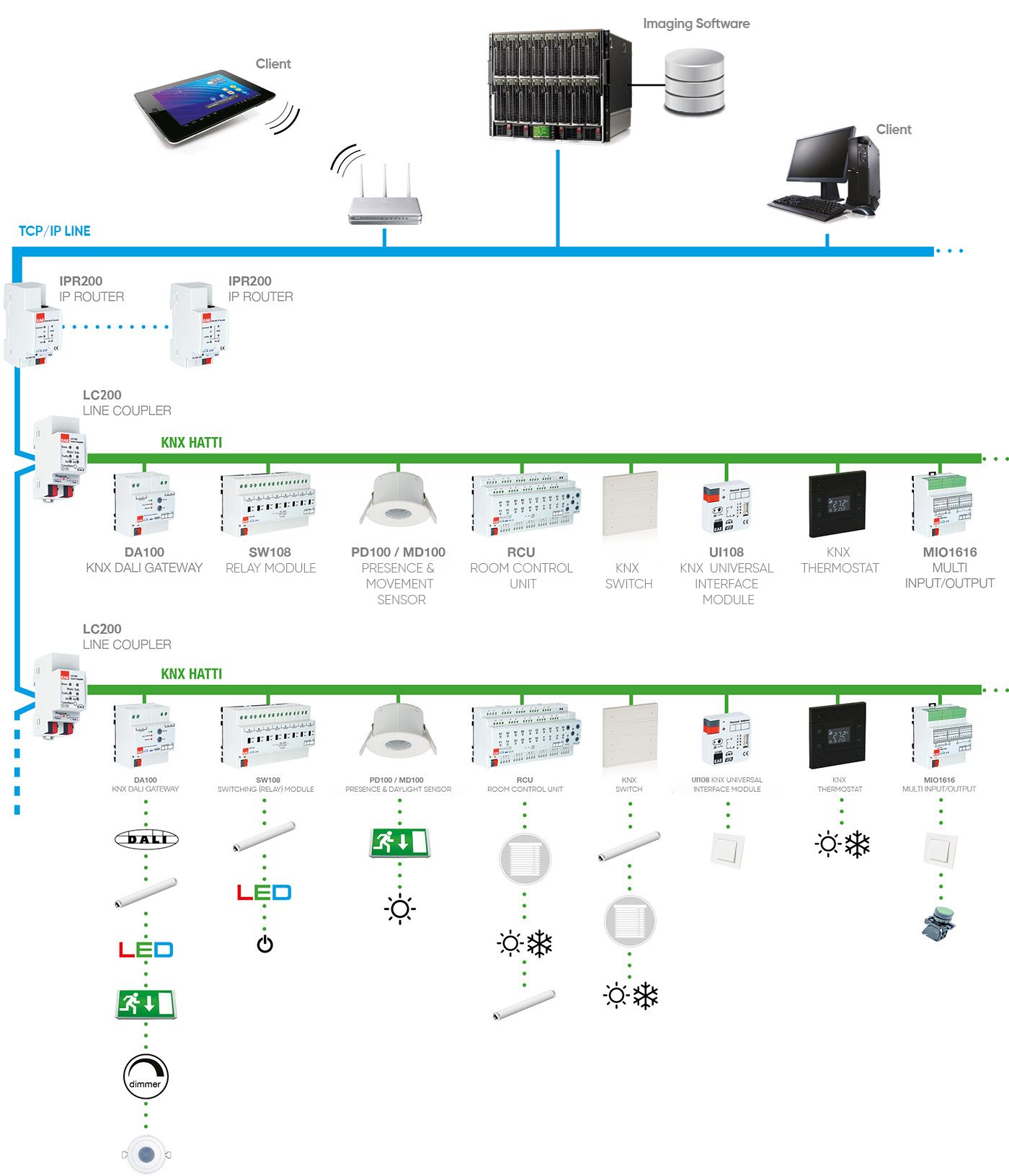 EAE KNX Commercial and Industrial Building Solutions are flexible and extendable to fulfil all the requirements and expectations of customers. EAE Technology products are designed with manufacturer-independent protocols such as KNX, making extensions of the system possible with any other KNX manufactured products.