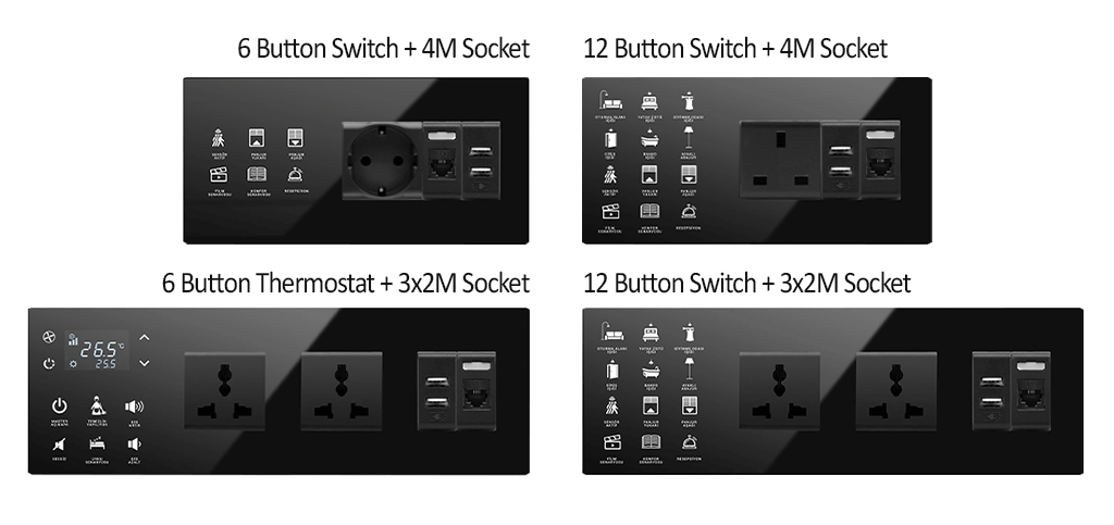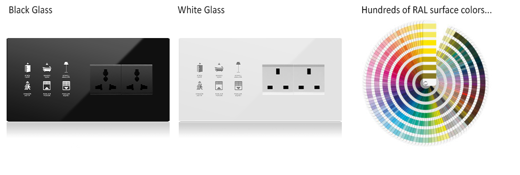 Different type of products can be easily combined in a single piece of glass plate. It can be expanded up to 5 modules. Any of these 5 modules can be selected as a switch, thermostat, card holder or socket.